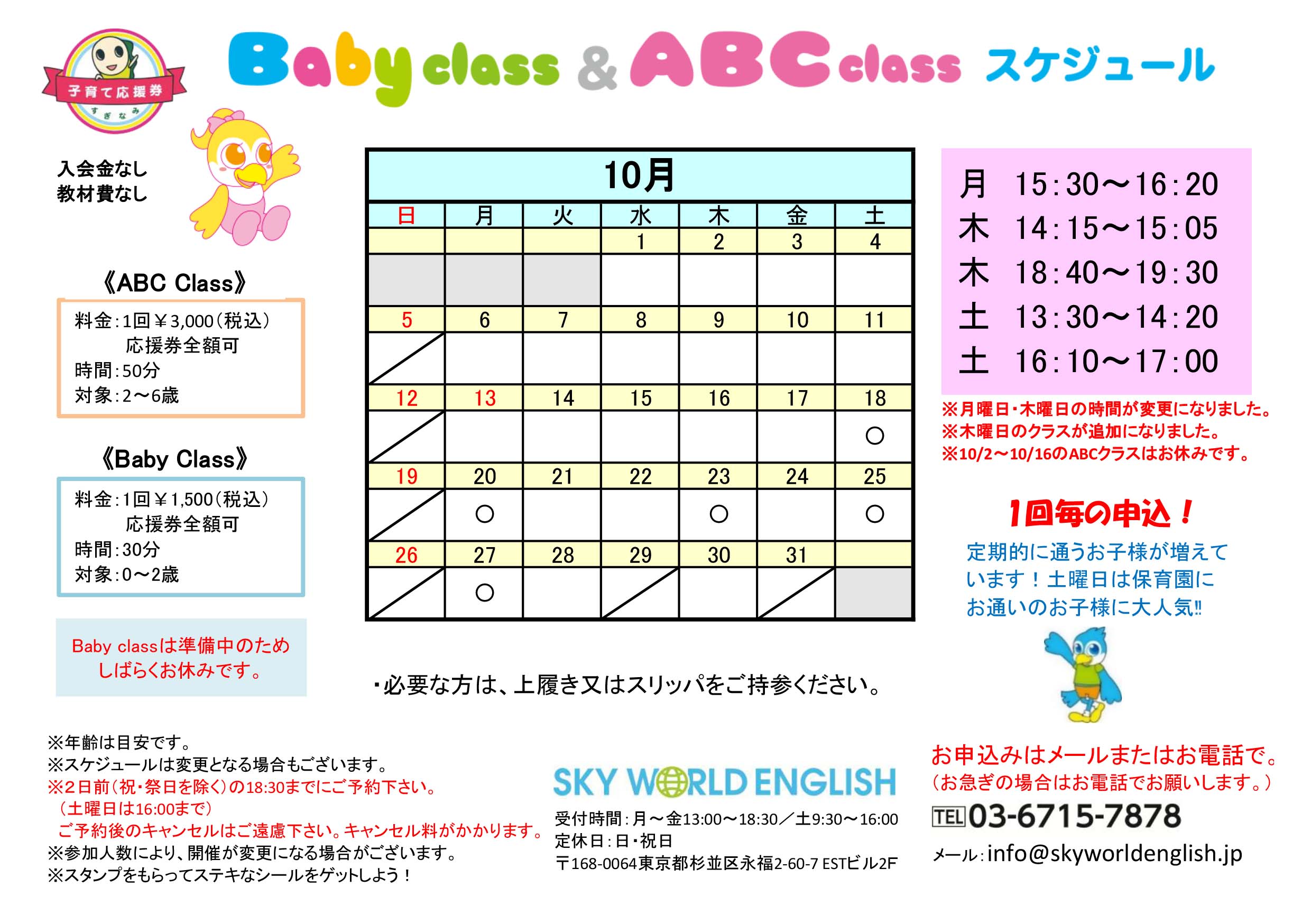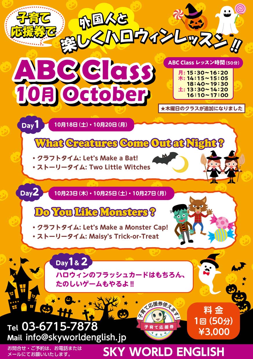 ※10/2~10/16のABCクラスはお休みです。
