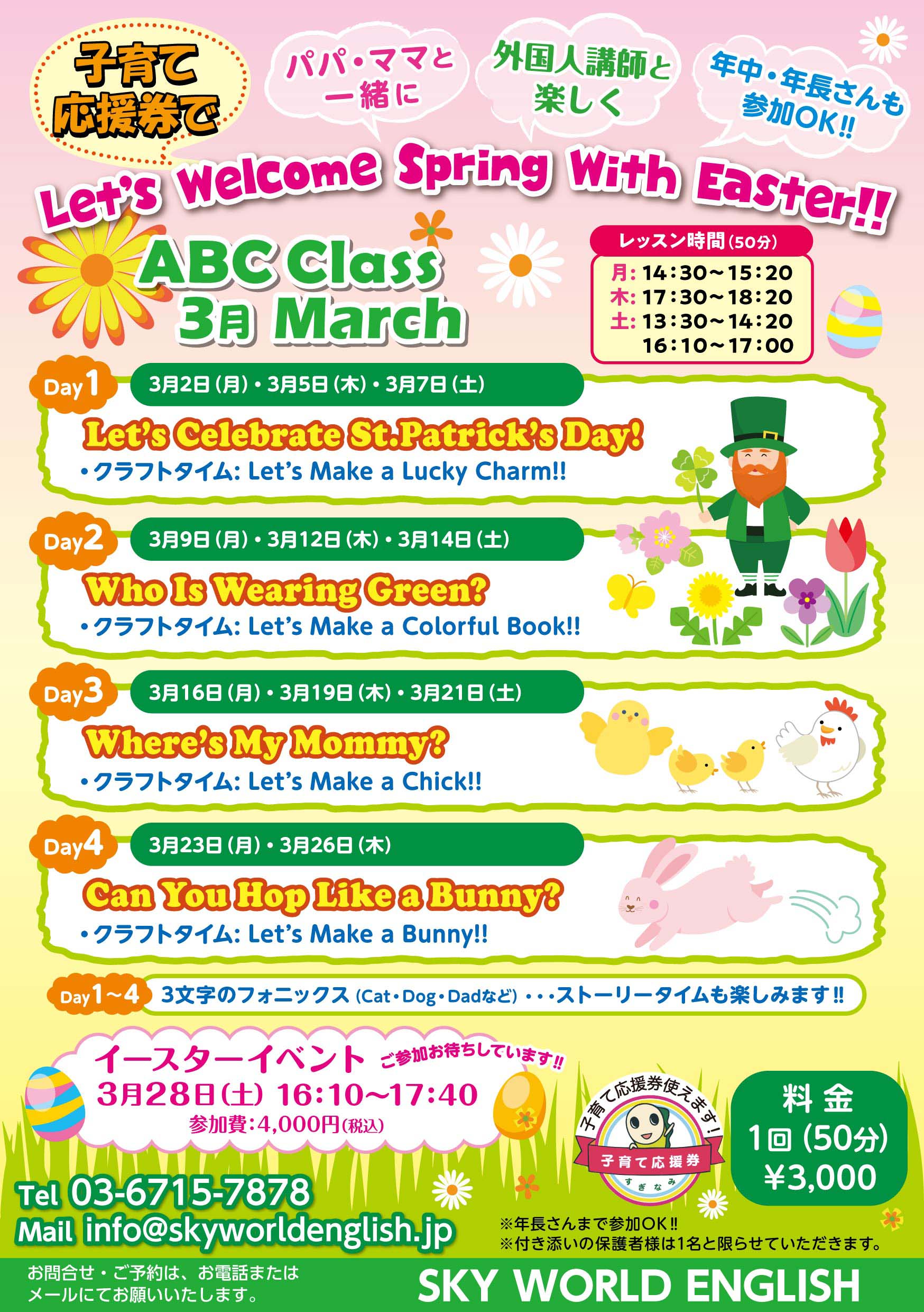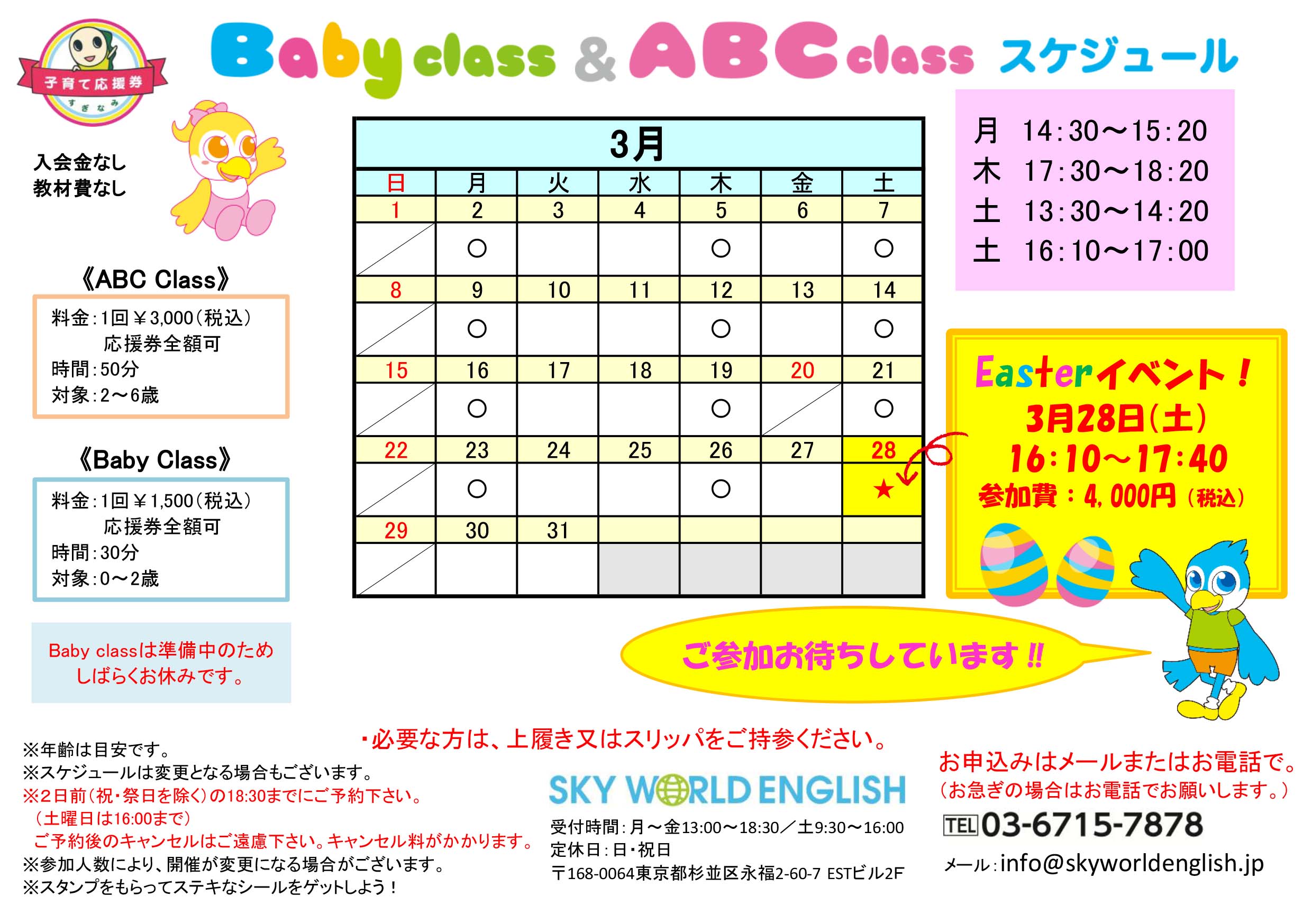 ★お申込みは メール[ info@skyworldenglish.jp ]またはお電話[ 03−6715−7878 ]で。